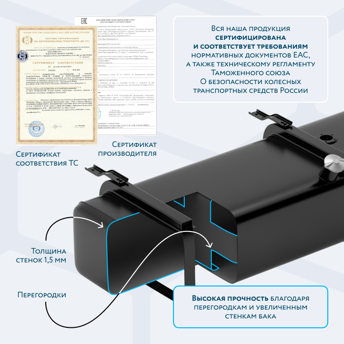 Топливный бак увеличенной ёмкости предназначен для установки на а/м Валдай (модификации ГАЗ-331042) и Газон Некст.